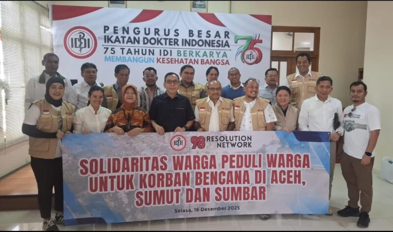 “Kami dari Aktivis 98 Resolusi Network yang terdiri dari Aktivis 98 dan Relawan Prabowo-Gibran pada Pilpres 2024 lalu. Saat ini kita berhasil mengumpulkan 98 juta yang dananya berumber dari solidaritas kawan-kawan aktivis 98 pendukung Pemerintahan Prabowo Gibran. Donasi ini disalurkan melalui PB IDI untuk disalurkan dalam penanganan krisis kesehatan di bencana Sumatera Barat, Sumatera Utara dan Aceh,” kata Haris Rusly Moti sebagai salah satu inisiator 98 Resolution Network didampingi Eli Salomo beserta puluhan inisiator 98 Resolution Network di sekretariat PB IDI.