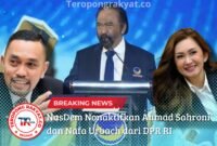 Jakarta, TeropongRakyat.co — Dewan Pimpinan Pusat (DPP) Partai NasDem resmi menonaktifkan Ahmad Sahroni dan Nafa Urbach dari keanggotaan Fraksi NasDem di DPR RI. Keputusan…