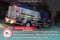 Jakarta, TeropongRakyat.co – Aktivitas ilegal kembali terungkap di Kawasan Industri Pulogadung, Jakarta Timur. Sebuah gudang yang ditutupi seng di Jalan Rw Sumur, Jatinegara, Kecamatan…