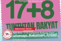 Jakarta, TeropongRakyat.co – Unggahan bertuliskan “17+8 Tuntutan Rakyat” ramai digaungkan warganet lewat media sosial. Istilah ini muncul setelah gelombang aksi demonstrasi di berbagai daerah yang…