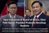 JAKARTA, teropongrakyat.co — Mantan Wakil Menteri Luar Negeri RI, Dino Patti Djalal, menilai Presiden Prabowo Subianto mengambil sikap realistis terkait peluang keterlibatan Indonesia dalam…