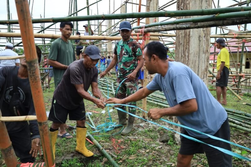 Tidore Kepulauan – Teropongrakyat.co ||Semangat kebersamaan dan gotong royong kembali terlihat dalam pelaksanaan TNI Manunggal Membangun Desa (TMMD) ke-126 Kodim 1505/Tidore. Personel Satgas TMMD bersama masyarakat bergotong royong melakukan pemasangan steleng dan rangka besi sebagai persiapan pengecoran tiang Masjid Desa Lifofa, Kecamatan Oba Selatan, Kota Tidore Kepulauan, Sabtu (11/10/2025).