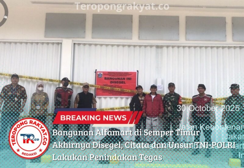 Jakarta Utara, TeropongRakyat.co – Setelah menuai sorotan tajam dari publik dan berbagai media, akhirnya bangunan gerai Alfamart di Jalan Kebantenan II, Kelurahan Semper Timur, Kecamatan Cilincing, Jakarta Utara, resmi disegel oleh petugas gabungan dari Citata, pada Kamis, 31 Oktober 2025.