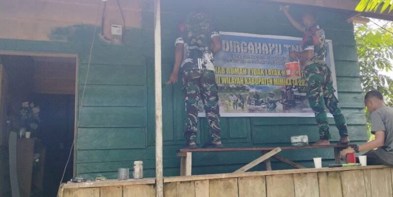 Timika – Teropongrakyat.co – Dalam rangka memperingati HUT ke-80 TNI, Kodim 1710/Mimika kembali menggelar kegiatan Bakti Teritorial Prima TA 2025 dengan sasaran perbaikan rumah tidak layak huni milik bapak Kamaniel Waker di Kp. Damai, Distrik Kwamki Narama, Kab. Mimika, Jumat (26/09/2025). Perbaikan rumah tidak layak huni ini merupakan wujud nyata kepedulian TNI dalam hal ini Kodim 1710/Mimika terhadap peningkatan kesejahteraan masyarakat, khususnya bagi warga kurang mampu di wilayah binaan.