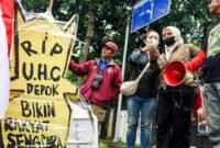 (potret:Donie/teropongrakyat.co) Depok, teropongrakyat.co — Aksi unjuk rasa warga Depok memanas di depan Balai Kota Depok, Senin (9/2/2026). Iring-iringan ambulans sengaja memasuki kawasan Balai Kota…