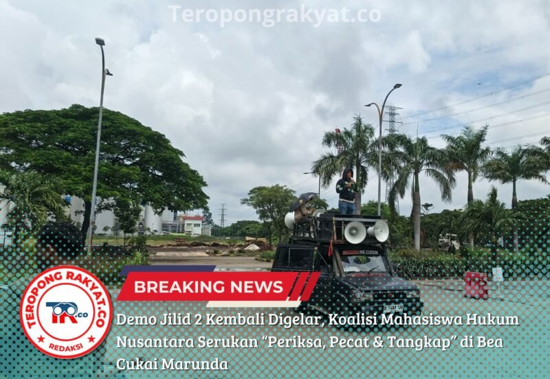 Jakarta Utara, TeropongRakyat.co — Aksi unjuk rasa lanjutan kembali digelar Koalisi Mahasiswa Hukum Nusantara dalam rangkaian demonstrasi Jilid 2 di depan Kantor KPPBC Tipe Madya Pabean A Marunda, Cilincing, Jakarta Utara, Jumat (13/2/2026).