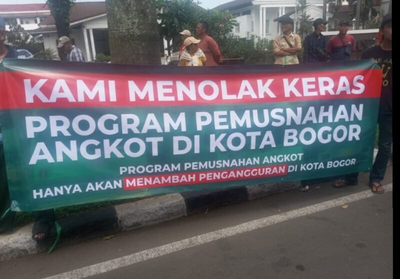 Massa aksi membawa spanduk bertuliskan “Kami Menolak Keras Program Pemusnahan Angkot di Kota Bogor” dan menilai kebijakan tersebut hanya akan menambah angka pengangguran di wilayah Kota Bogor.