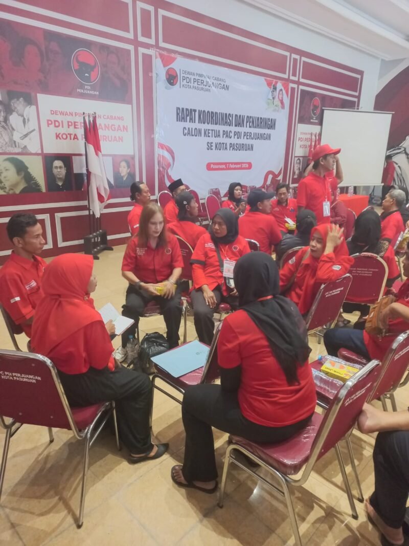 Kota Pasuruan | Teropongrakyat.co – Dewan Pimpinan Cabang (DPC) PDI Perjuangan Kota Pasuruan menggelar Rapat Koordinasi sekaligus Penjaringan Bakal Calon Ketua Pimpinan Anak Cabang (PAC) se-Kota Pasuruan, Minggu (1/2/2026) pagi. Kegiatan berlangsung di Kantor DPC PDI Perjuangan Kota Pasuruan, Jalan KH. Mas Mansyur No. 3, Kelurahan Sekargadung, Kecamatan Purworejo.