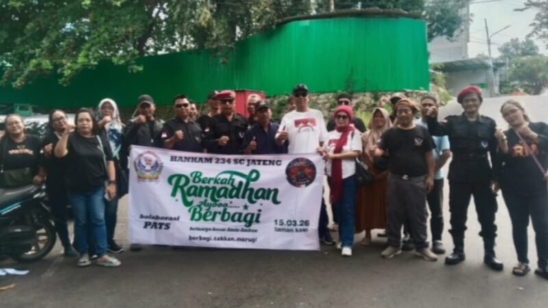 Semarang – Teropongrakyat.co || Semangat berbagi di bulan suci Ramadan kembali ditunjukkan sejumlah komunitas di Kota Semarang. Unit Hankam 234 SC Jawa Tengah bersama komunitas PATS dan Bolo Sewu pada Minggu (15/3/2026) menggelar aksi sosial berupa pembagian takjil gratis kepada pengguna jalan di kawasan Jalan Kawi, Kota Semarang, pada sore hari menjelang waktu berbuka puasa.