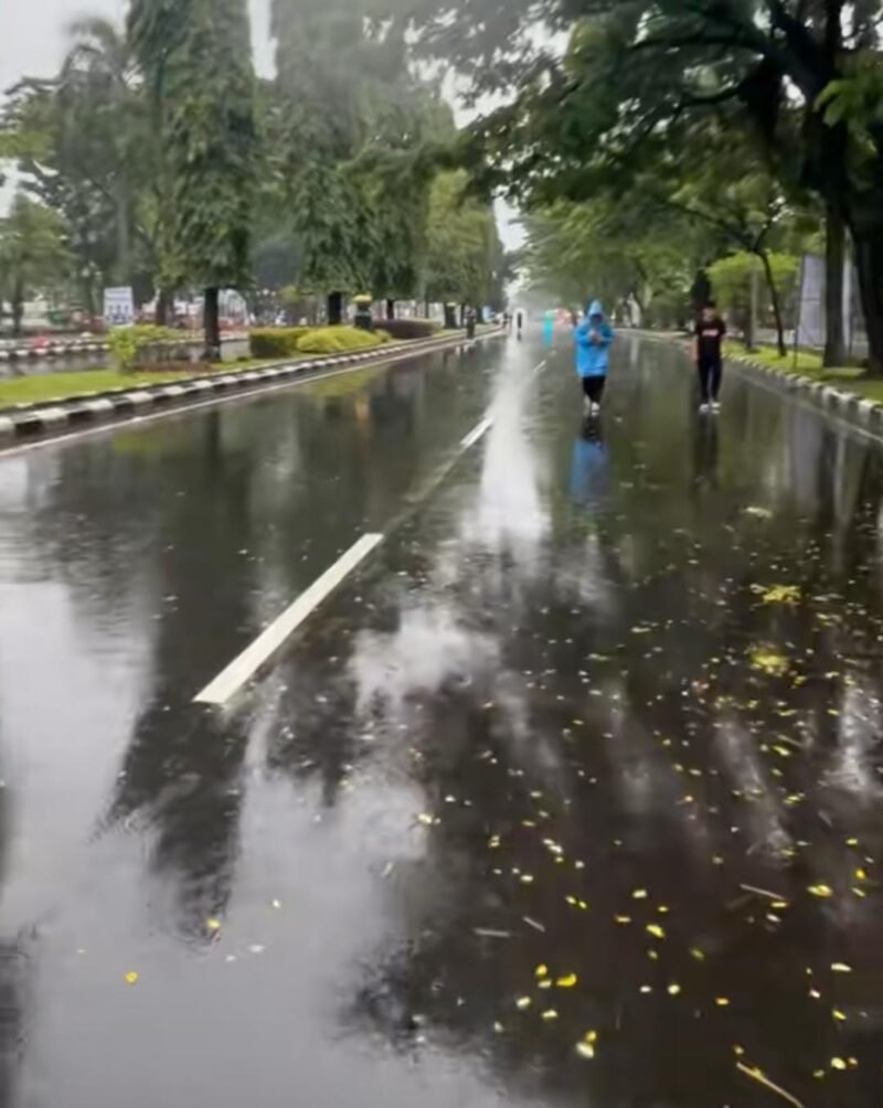 “Memang hujan, tapi olahraga kan sudah niat. Badan tetap harus gerak, asal tidak hujan deras banget,” ujar Rizal (34), warga Cibinong, saat ditemui di lokasi.