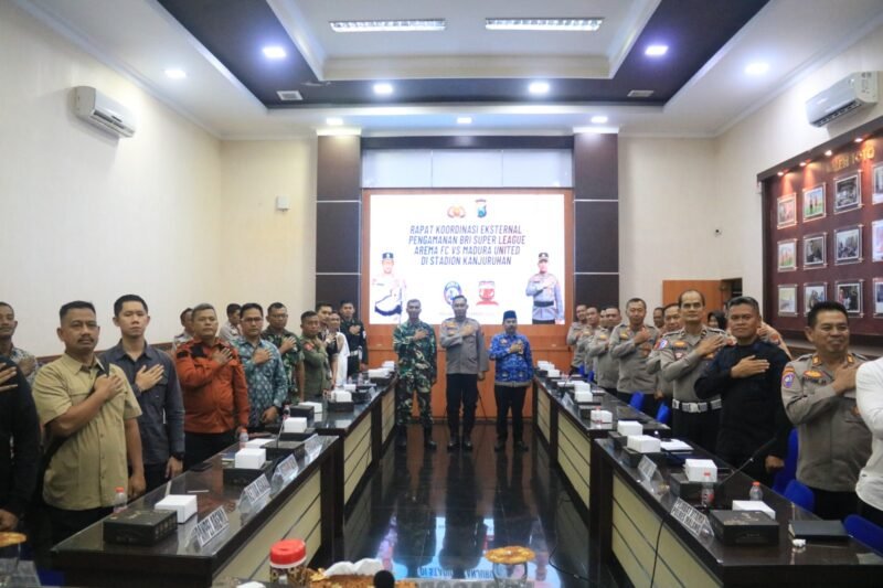 MALANG | Teropongrakyat.co – Polres Malang menggelar rapat koordinasi eksternal pengamanan pertandingan BRI Super League musim 2025/2026 antara Arema FC melawan Madura United yang dijadwalkan berlangsung pada Selasa (23/12/2025) di Stadion Kanjuruhan, Kabupaten Malang.