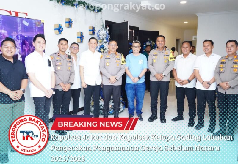 Jakarta Utara, TeropongRakyat.co – Kapolres Metro Jakarta Utara Kombes Pol Erick Frendriz, S.I.K., M.Si., bersama Wakapolres AKBP James H. Hutajulu dan Kapolsek Kelapa Gading de Kompol Seto Handoko Putra, melakukan pengecekan langsung di dua gereja di Kelapa Gading, Senin (22/12/25) pukul 15.00 WIB. Kegiatan ini bertujuan memastikan kesiapan pengamanan tempat ibadah dalam rangka perayaan Natal dan Tahun Baru (Nataru) 2025/2026.