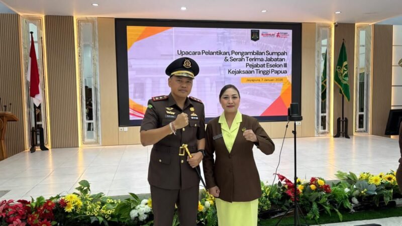 Papua -(teropongrakyat.co) Kejaksaan Tinggi (Kejati) Papua melaksanakan upacara pelantikan, pengambilan sumpah jabatan, dan serah terima jabatan (sertijab) Kepala Kejaksaan Negeri (Kajari) Mimika di Aula Kejati Papua, Jayapura, Rabu (7/1).