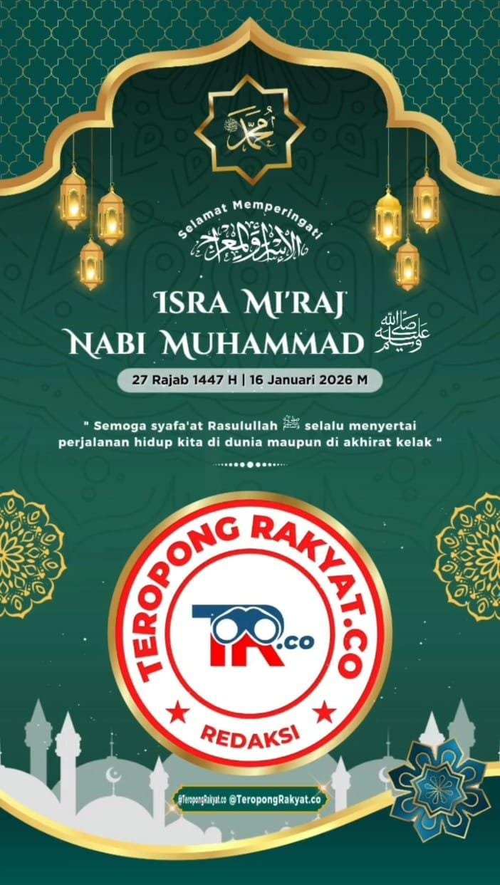 Jakarta, 16 Januari 2026 | teropongrakyat.co – Jajaran Redaksi Teropongrakyat.co menyampaikan ucapan Selamat Memperingati Isra Mi’raj Nabi Muhammad SAW kepada seluruh umat Muslim di Indonesia.