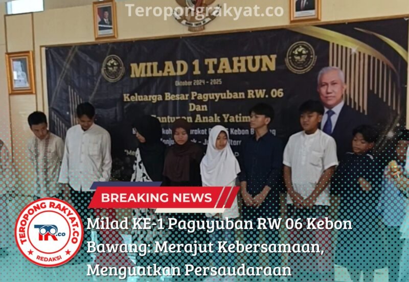 Jakarta Utara, TeropongRakyat.co – Dalam rangka memperingati Milad ke-1, Keluarga Besar Paguyuban RW 06 Kebon Bawang, Tanjung Priok, menggelar acara syukuran dan santunan anak yatim di Aula Lantai 5 Kantor Kecamatan Tanjung Priok, Jalan Yos Sudarso, Jakarta Utara. Acara ini mengusung tema “Merajut Kebersamaan, Menguatkan Persaudaraan.” Minggu, (19/10/2025).