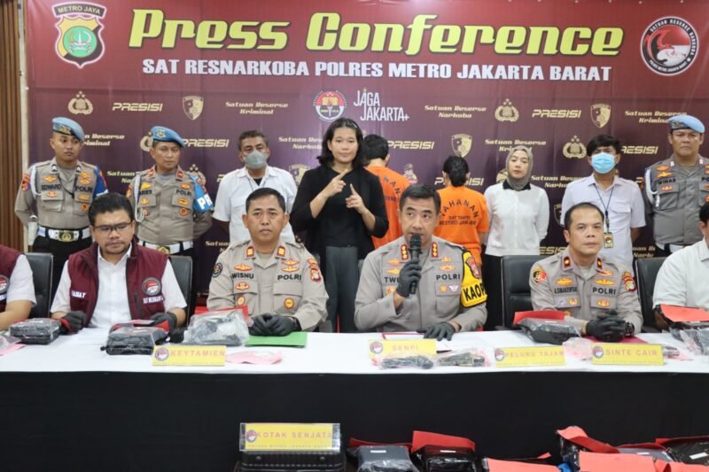 Kapolres Metro Jakarta Barat Kombes pol Twedy Bennyahdi didampingi Kasatres Narkoba Kompol Vernal Armando S dan Kapolsek Kalideres Kompol Arnold Julius Simanjuntak mengatakan, kedua pelaku sejoli ini ditangkap pada Jumat, 21 November 2025 di sebuah rumah kontrakan.