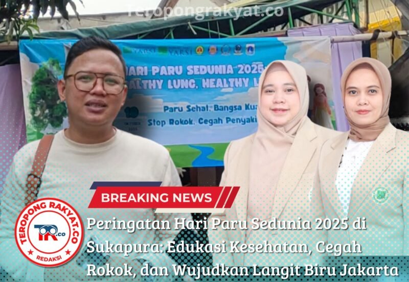 Jakarta, TeropongRakyat.co – Dalam rangka memperingati Hari Paru Sedunia 2025 dengan tema “Healthy Lung, Healthy Life – Paru Sehat, Bangsa Kuat”, Lembaga Musyawarah Kelurahan (LMK) Sukapura bekerja sama dengan Rumah Sakit Yarsi dan Fakultas Kedokteran Universitas Yarsi menggelar kegiatan sosial dan edukatif di Kampung Sukapura, RT 007 RW 10, Kelurahan Sukapura, Kecamatan Cilincing, Jakarta Utara.