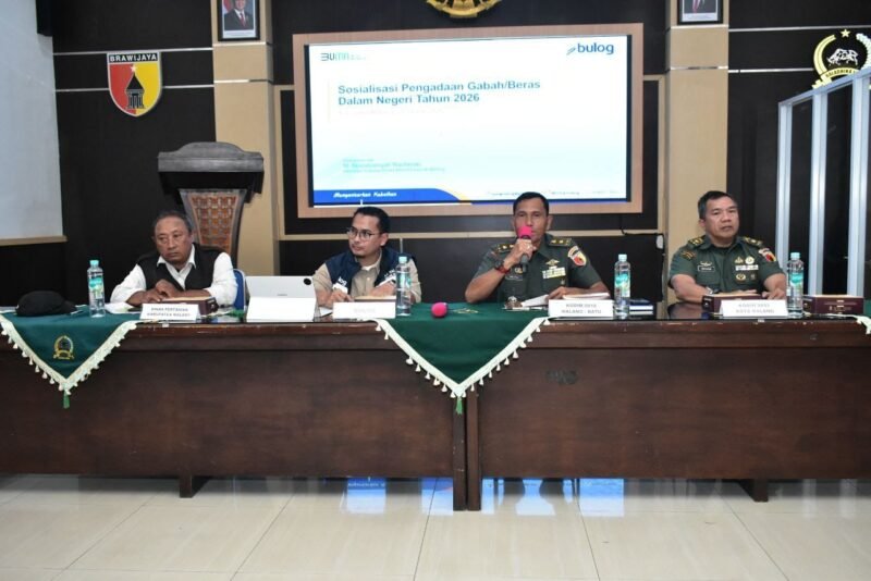 Malang | Teropongrakyat.co – Kodim 0818/Malang-Batu menegaskan komitmennya dalam mendukung kedaulatan pangan nasional. Hal ini dibuktikan dengan digelarnya kegiatan Sosialisasi Pengadaan Gabah/Beras Dalam Negeri Tahun 2026 oleh Perum Bulog yang bertempat di Aula Kodim 0818/Malang-Batu, Rabu (28/1).