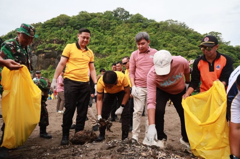 Polres Jember Laksanakan Gerakan Indonesia Asri Bersihkan Pantai Watu Ulo