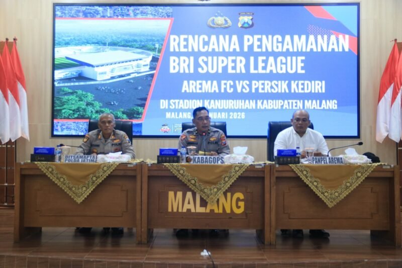 MALANG | Teropongrakyat.co – Kepolisian Resor Malang, Polda Jatim, mematangkan kesiapan pengamanan menjelang pertandingan BRI Super League musim 2025/2026 antara Arema FC melawan Persik Kediri yang akan digelar di Stadion Kanjuruhan, Kepanjen, Minggu (11/1/2026).