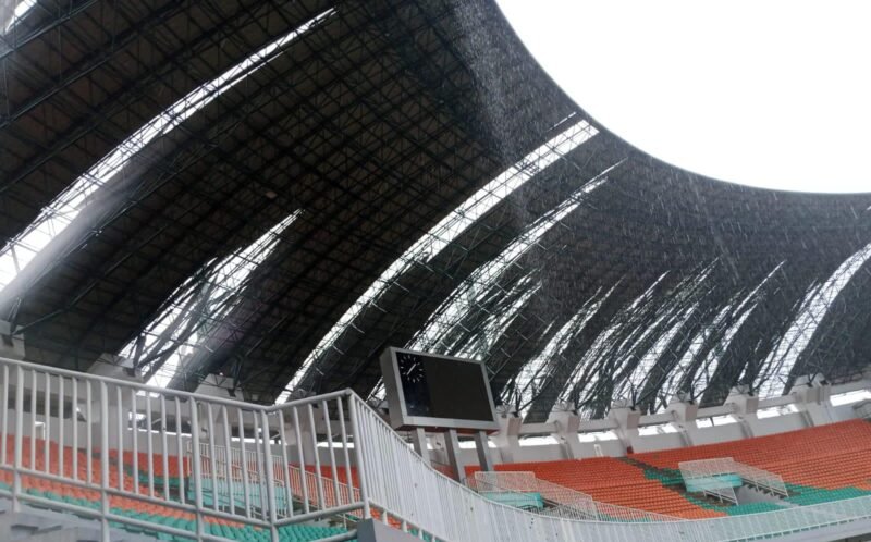 Berdasarkan pantauan di lapangan dan dokumentasi warga, terjangan angin kencang disertai hujan deras menyebabkan sebagian struktur atap stadion terkelupas dan tidak lagi berfungsi sebagaimana mestinya. Air hujan terlihat langsung masuk ke area tribun, menandakan kerusakan signifikan pada sistem penutup stadion.