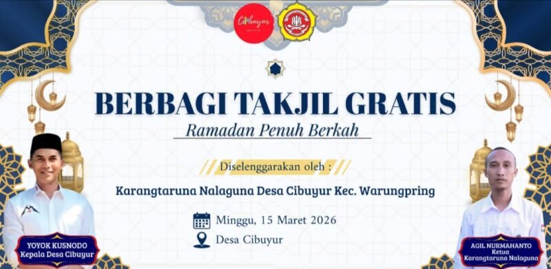 Pemalang, 15 Maret 2026 | teropongrakyat.co – Bulan Ramadan selalu menjadi momen istimewa untuk berbagi kebaikan. Semangat tersebut diwujudkan oleh Karang Taruna Desa Cibuyur, Kecamatan Warungpring, Kabupaten Pemalang, melalui kegiatan berbagi 1.000 takjil kepada masyarakat.