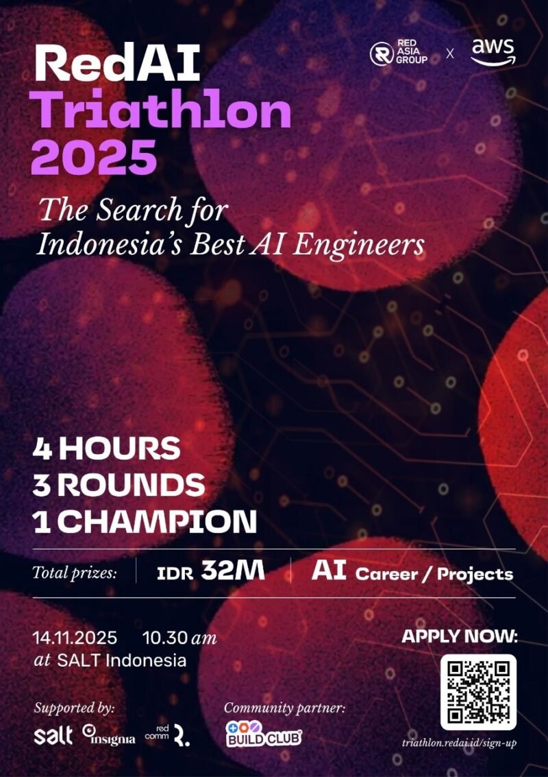 Melihat potensi tersebut, Red Asia Group bersama Amazon Web Services (AWS) meluncurkan RedAI Triathlon 2025, sebuah ajang nasional yang dirancang untuk mempercepat pertumbuhan ekosistem AI di Indonesia melalui penguatan sumber daya manusia unggul dan inovatif.