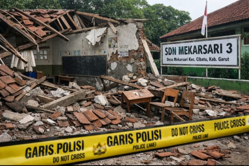 Garut, teropongrakyat.co – Dentuman keras dari bangunan yang runtuh di SDN Mekarsari 3, Desa Mekarsari, Kecamatan Cibatu, Kabupaten Garut, Jawa Barat, menjadi alarm serius bagi pengelolaan sarana pendidikan. Sebagian ruang kelas dilaporkan ambruk, menyisakan puing-puing dan debu tebal, serta memunculkan pertanyaan besar mengenai tanggung jawab pengelola sekolah dan pengawasan dari Dinas Pendidikan.