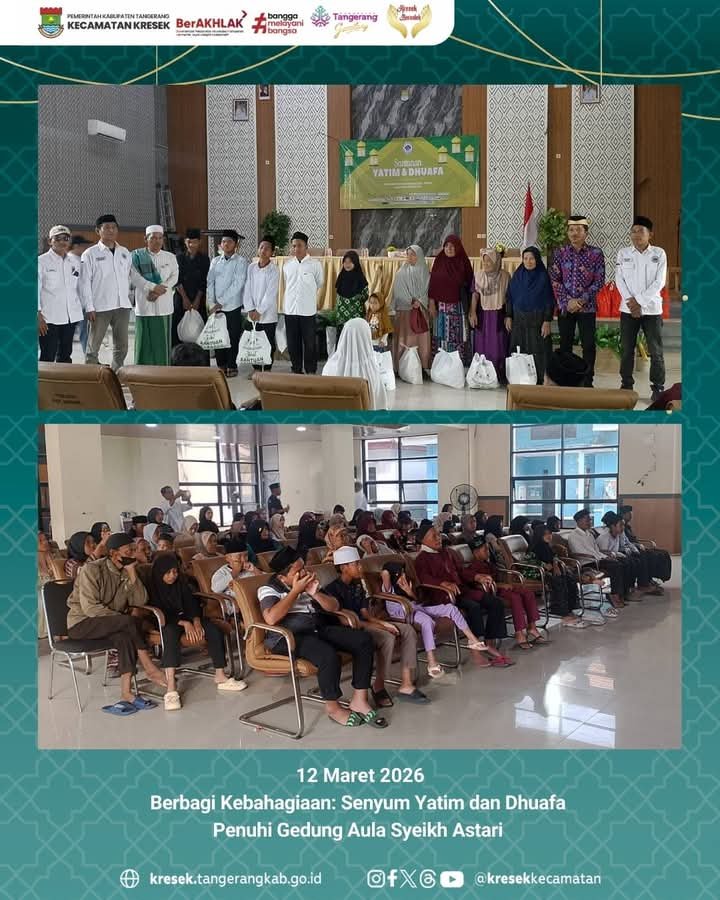 Kegiatan yang berlangsung pada Kamis (12/03/2026) di Gedung Aula Syeikh Astari, Kecamatan Kresek ini berlangsung khidmat dan penuh kehangatan. Puluhan anak yatim serta kaum dhuafa dan jompo menerima santunan sebagai bentuk kepedulian sosial di bulan penuh berkah.