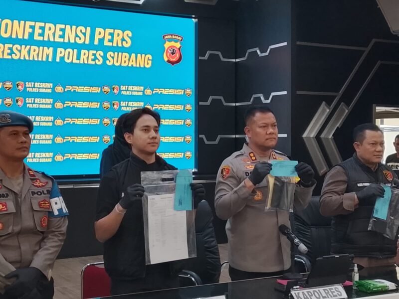 Kapolres Subang AKBP Dony Eko Wicaksono, S.H., S.I.K., M.H., Ph.D., yang secara langsung meminpin konferensi pers digelar di Aula Patriatama Mapolres Subang, Jumat (6/2/2026), pukul 10.30 WIB.