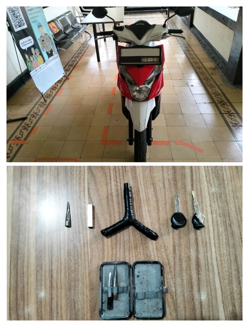 “Dari hasil pemeriksaan awal, yang bersangkutan mengakui mencuri sepeda motor dengan menggunakan kunci T untuk membuka kunci stang kendaraan,” ujarnya.