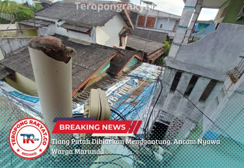 Jakarta Utara, TeropongRakyat.co – Sebuah tiang jaringan milik Telkom Indonesia dilaporkan patah dan dibiarkan menggantung di Jalan Sungai Tiram RT 04/RW 09, Kelurahan Marunda, Jakarta Utara. Kondisinya memprihatinkan, hanya tersangkut di antara kabel, tanpa penanganan berarti sejak pertama kali diketahui pada 9 April 2026. Kamis, (16/04/2026).