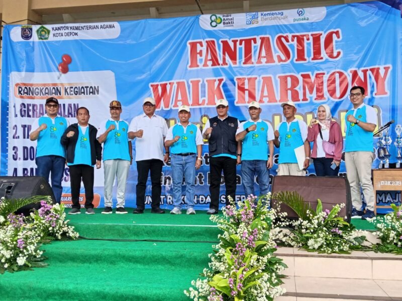 Depok – Teropongrakyat.co – Kakanwil Kemenag Provinsi Jawa Barat, Dudu Rohman dan Walikota Depok Supian Suri hadir dan menyambut para peserta Fantastic Walk Harmoni HAB Ke-80 Kementerian Agama RI tingkat Kemenag Kota Depok bersama dengan Kepala Kantor Kemenag Kota Depok, Enjat Mujiat di Alun-Alun Kota Depok, sabtu (17/01/2025).